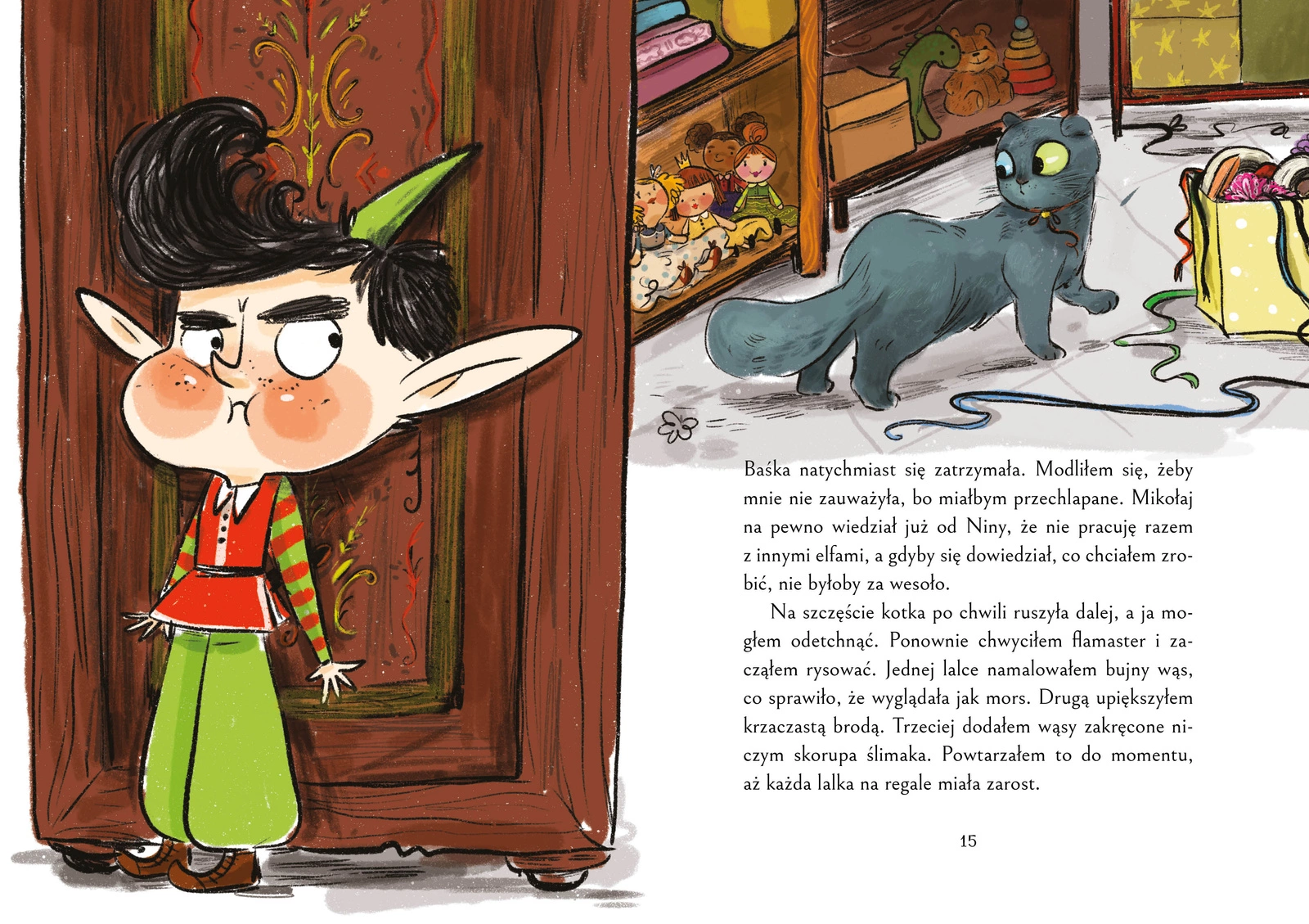 Gdy tylko rozpoczął się grudzień, Mareczek uznał, że w warsztacie Świętego Mikołaja przyda się… odrobina zamieszania. Najpierw nadał lalkom zupełnie nowe „stylizacje”, później postanowił zaskoczyć samego Mikołaja niecodziennym dodatkiem do herbaty. A trzeciego dnia? Cóż, jego kolejna sztuczka przeszła najśmielsze oczekiwania — i to dopiero początek! Przez 24 dni ten figlarny elf zaskakuje pomysłami, które wywołują śmiech i niedowierzanie.