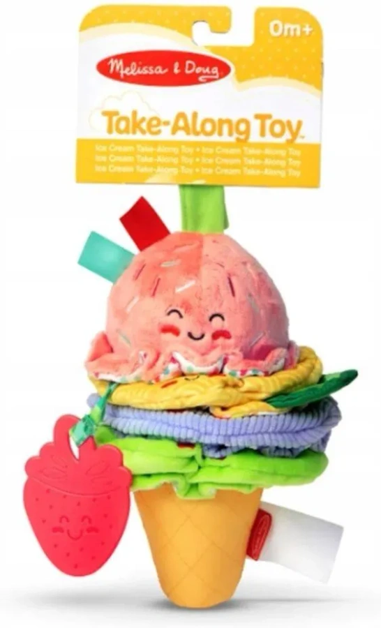 Ta urocza, interaktywna zabawka w kształcie lodowego stożka została zaprojektowana z myślą o najmłodszych. Idealna do zabawy w domu i w podróży – można ją łatwo przypiąć do wózka, torby na pieluchy, krzesełka czy fotelika samochodowego.