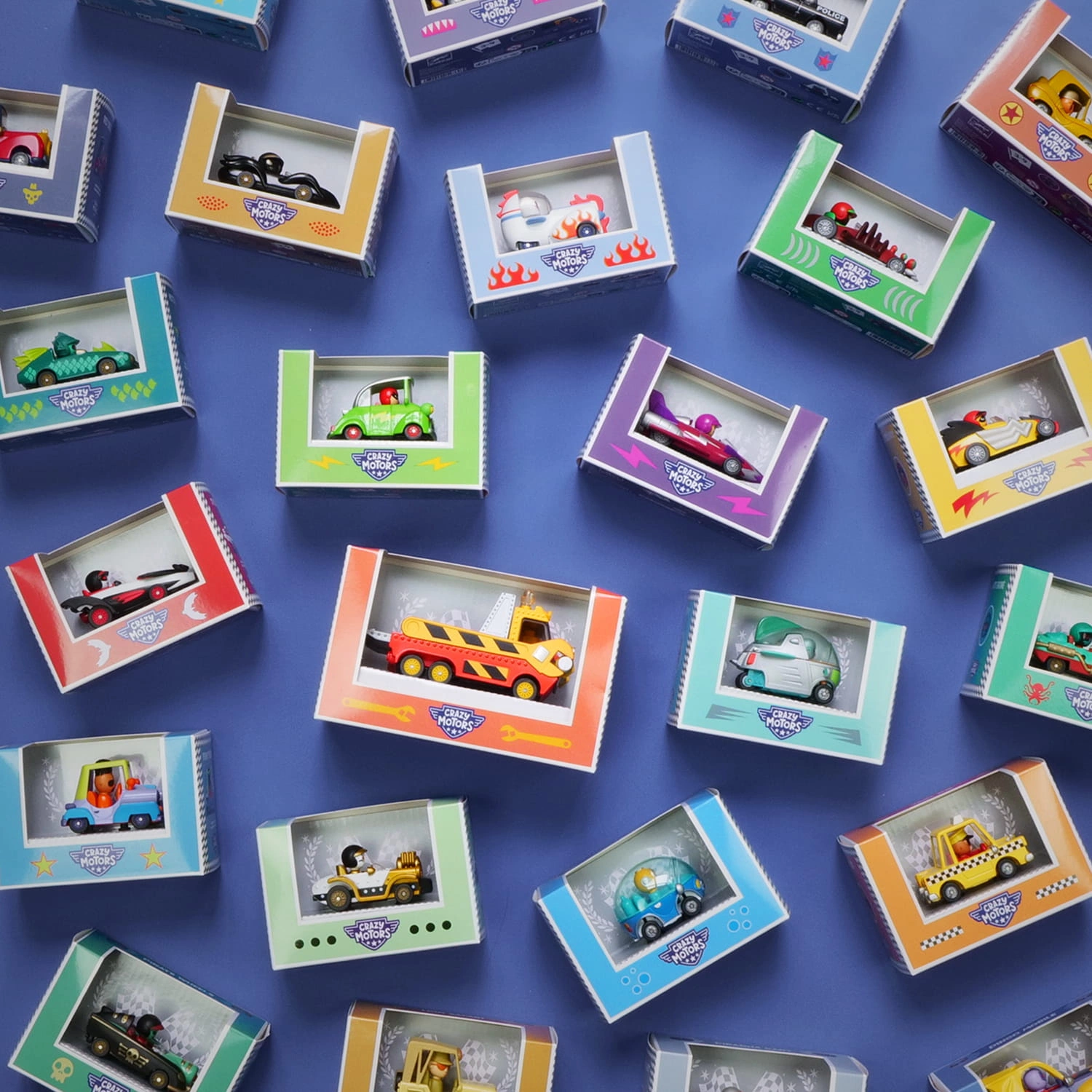 ,2,1... ODLOT! Kosmiczny samochód-rakieta jest zawsze gotowy na wyścig wśród gwiazd. Profesjonalny kierowca astronauta nie pierwszy raz przemierza kosmiczne ścieżki. Astro Rocket to samochodzik z nowej kolekcji Djeco - Crazy Motors. Jak sama nazwa wskazuje są to odjazdowe wyścigówki inspirowane kierowcami światowego formatu takimi jak Niki Lauda czy Michael Schumacher. Każde autko z serii jest wykonane z metalu i pojedynczych plastikowych części, które nadają unikatowego wyglądu. Posiadają metalowe zawieszenie i gumowe opony. Pojazdy pomalowane są metaliczną farbą. Każde autko prowadzi inny, przymocowany na stałe kierowca, którego głowa obraca się. Zabawka może stanowić część kolekcji, która liczy ponad 20 modeli oraz akcesoria takie jak laweta, puzzle droga i piętrowy warsztat samochodowy z windą, myjnią, parkingiem i stacją ładowania pojazdów.