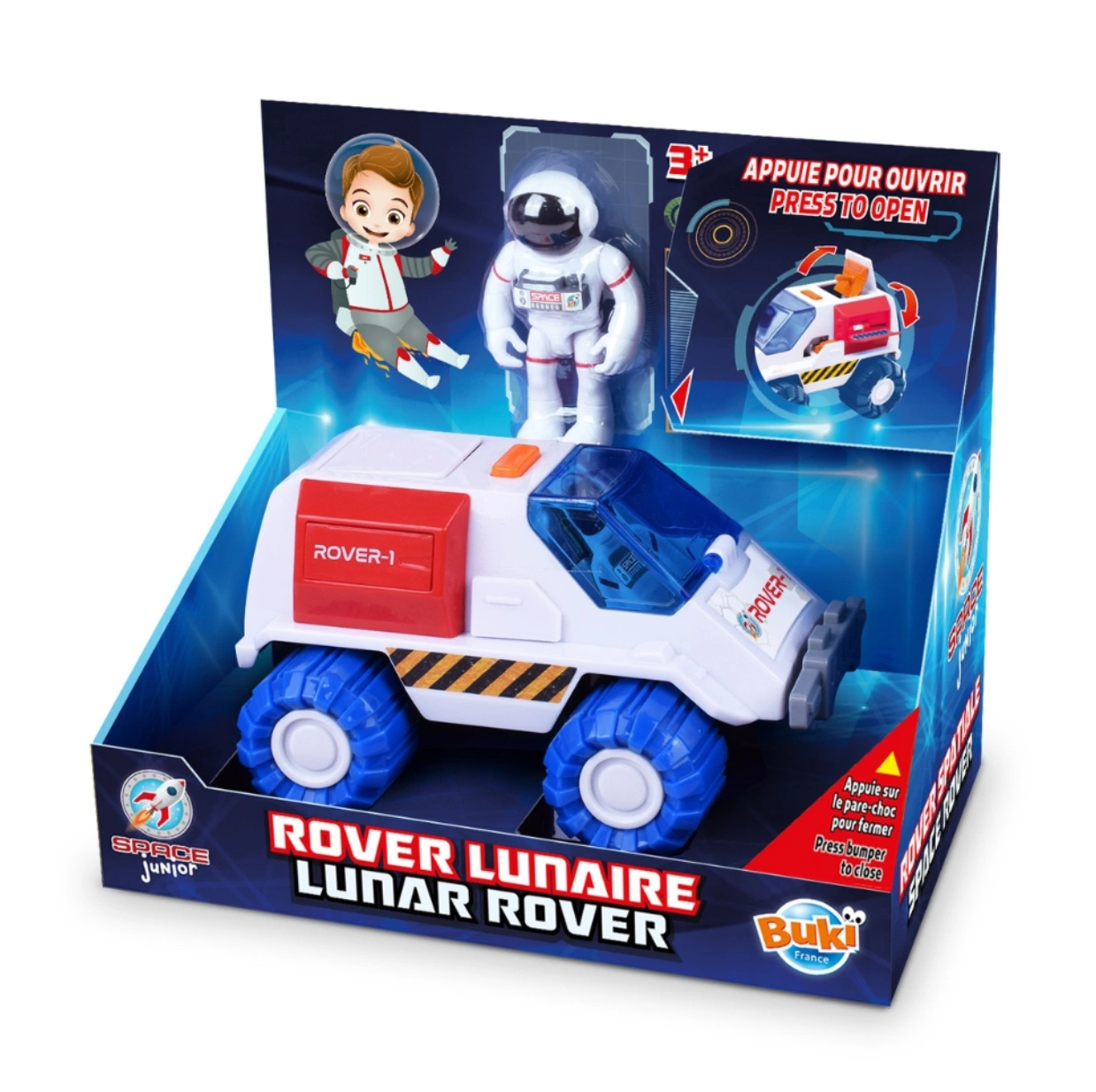 W zestawie znajduje się także figurka astronauty o wysokości 7,5 cm, którą można umieścić w przedniej części pojazdu, aby była gotowa do kolejnych misji badawczych. Zabawka zachęca do odgrywania ról, rozwija wyobraźnię oraz ciekawość świata i kosmosu.