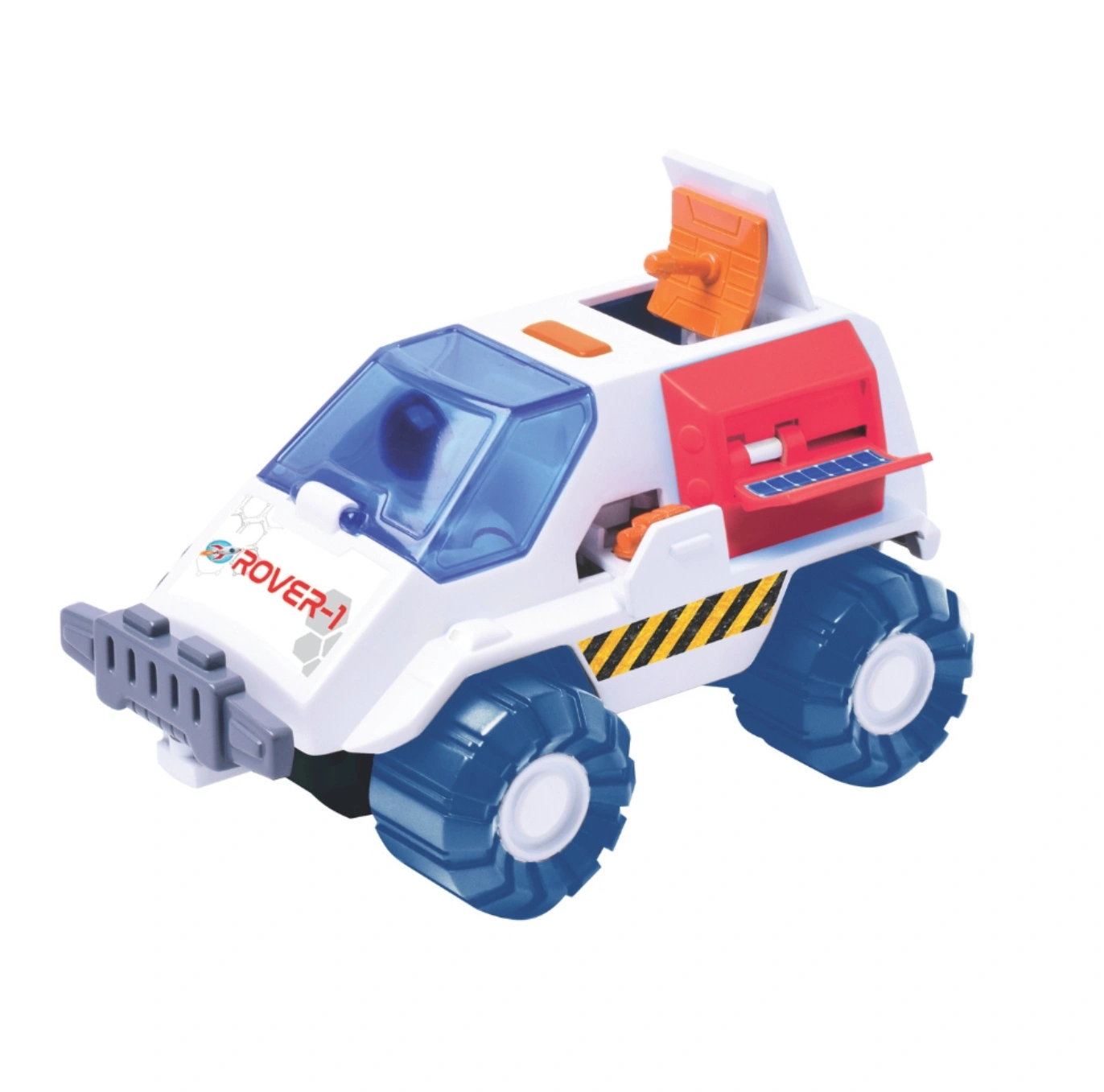 - Ten futurystyczny pojazd badawczy został stworzony do eksploracji księżycowej powierzchni i dalekich zakątków kosmosu. Dzięki prostemu mechanizmowi sterowanemu przyciskami dziecko może aktywnie uczestniczyć w zabawie, uruchamiając i chowając elementy wyp