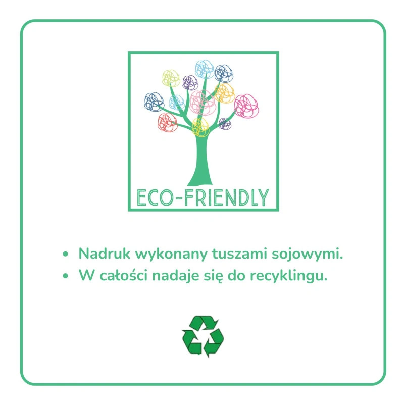 Produkt przyjazny dla środowiska: - nadruki wykonane tuszami sojowymi - w pełni nadaje się do recyklingu - certyfikat FSC