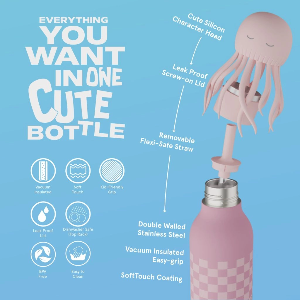 Butelka termiczna ze słomką Bestie Asobu –Meduza Różowa