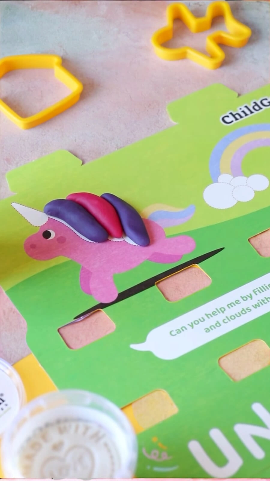 - Papierowe opakowanie, które po rozłożeniu staje się specjalną kartą z plastycznymi zadaniami dla dziecka, np. tworzenie jajka dinozaura, ogrodzenia dla konika czy kolorowego rogu jednorożca.
