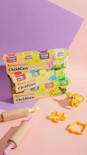 - Zestaw ciastoliny ChildGen to naturalna, bezpieczna zabawa! Cztery kolorowe kubeczki w 100% organicznych składnikach, papierowe opakowanie z plastycznymi zadaniami oraz wsparcie rozwoju manualnego dziecka. Idealne do zabawy w domu i podróży.