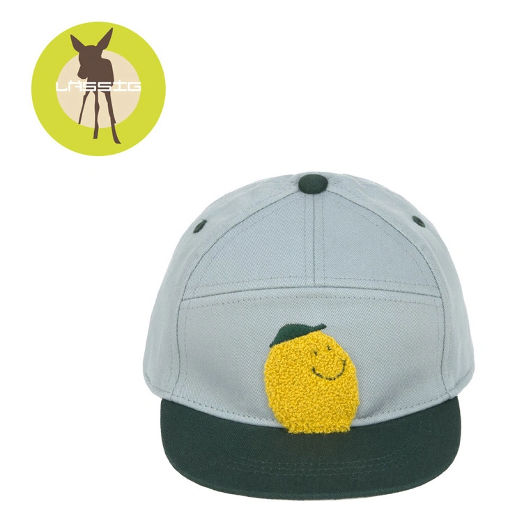 Idealna na co dzień – chroni przed słońcem i wiatrem, a jednocześnie stanowi modny dodatek do dziecięcej stylizacji. Nowoczesny, prosty daszek oraz starannie dobrana kolorystyka sprawiają, że czapka wyróżnia się na tle innych modeli. Błękitny odcień kontrastuje z ciemnozielonymi detalami, takimi jak daszek i obszycia otworów wentylacyjnych. Z przodu znajduje się haftowana aplikacja 3D w kształcie żółtej cytrynki.