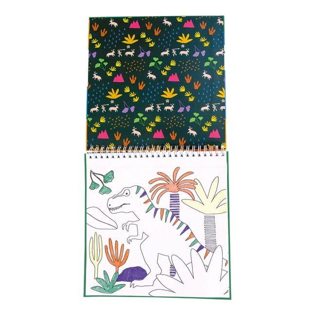 Wystarczy wybrać kolor, rozpocząć rysowanie i obserwować jak na stronach pojawiają się magiczne rysunki przedstawiające dinozaury, jaskiniowców, wulkany i wiele innych motywów związanych z parkiem jurajskim. Książeczka z spiralnym grzbietem zawiera 4 magiczne pisaki i 8 kolorowanek.