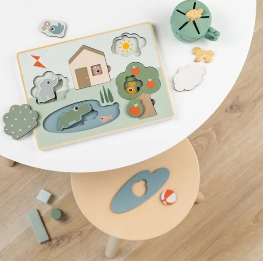- Drewniane puzzle warstwowe Deer Friends od Done by Deer to edukacyjna układanka, która łączy naukę z kreatywną zabawą, wspierając rozwój małych dzieci.