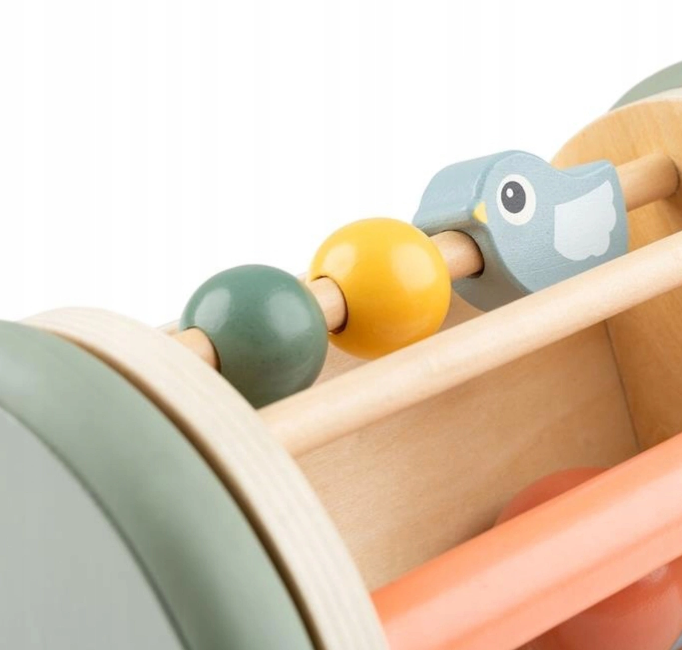 - Dodatkowa zabawa – ustawienie pionowe umożliwia poruszanie koralikami i ptaszkiem Birdee, ćwicząc motorykę.