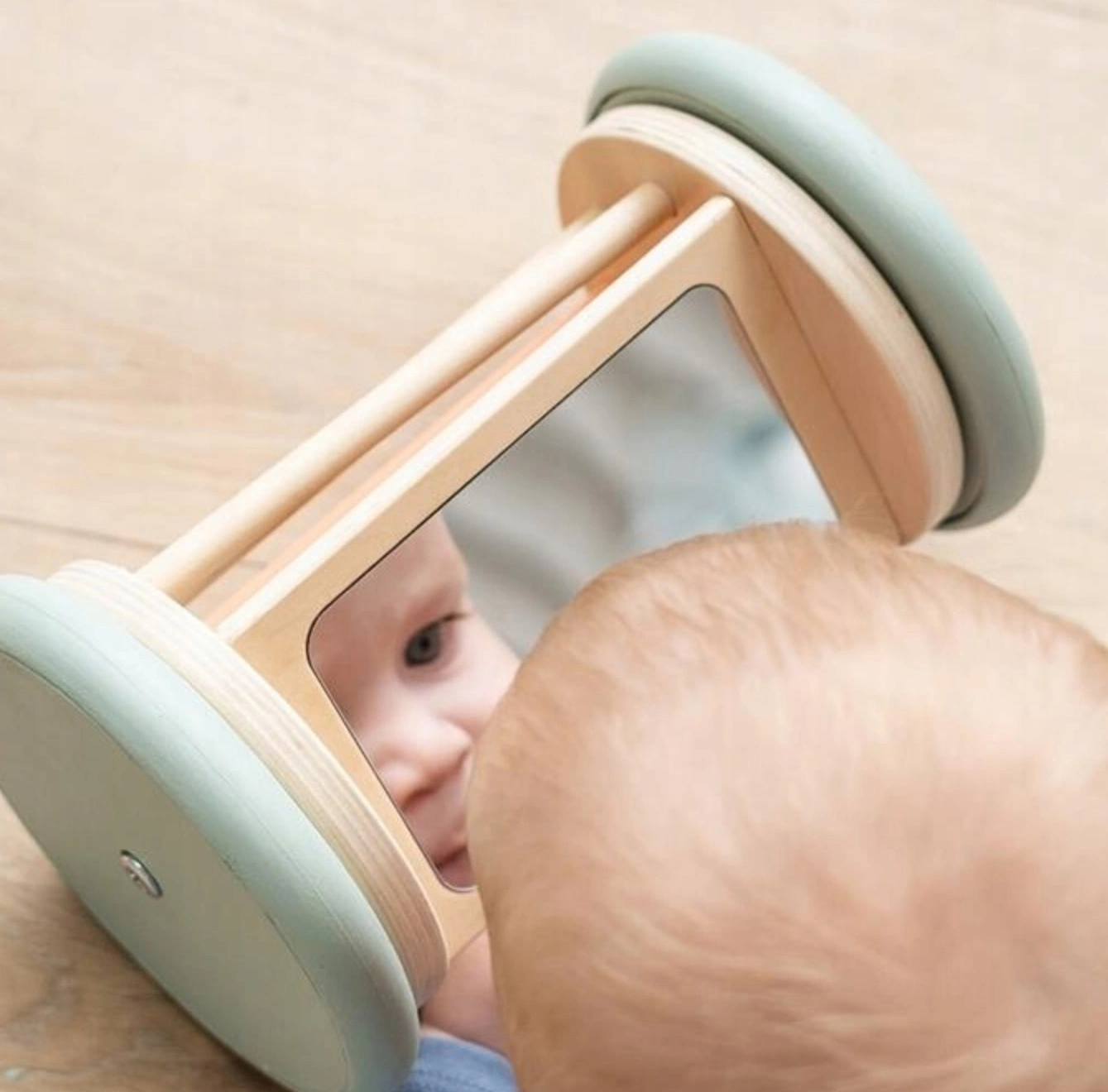 - Obrotowe lusterko z kolorowymi elementami stymuluje wzrok i zachęca do eksploracji.