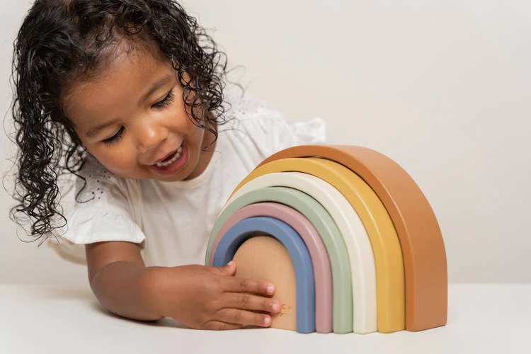 Kreatywność i rozwój wyobraźni: Zestaw składa się z ośmiu półokręgów w różnych kolorach i rozmiarach, które dzieci mogą układać na różne sposoby, tworząc nie tylko tęczę, ale także inne konstrukcje, takie jak tor przeszkód, tunel dla samochodzików czy wieża.