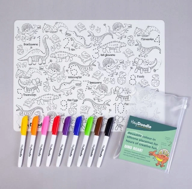 - Mata silikonowa do kolorowania z dinozaurami to doskonała zabawa edukacyjna dla maluchów. Dzięki niej dzieci mogą rozwijać swoje umiejętności manualne, kreatywność oraz koncentrację, jednocześnie ucząc się liczenia i pisania cyfr.