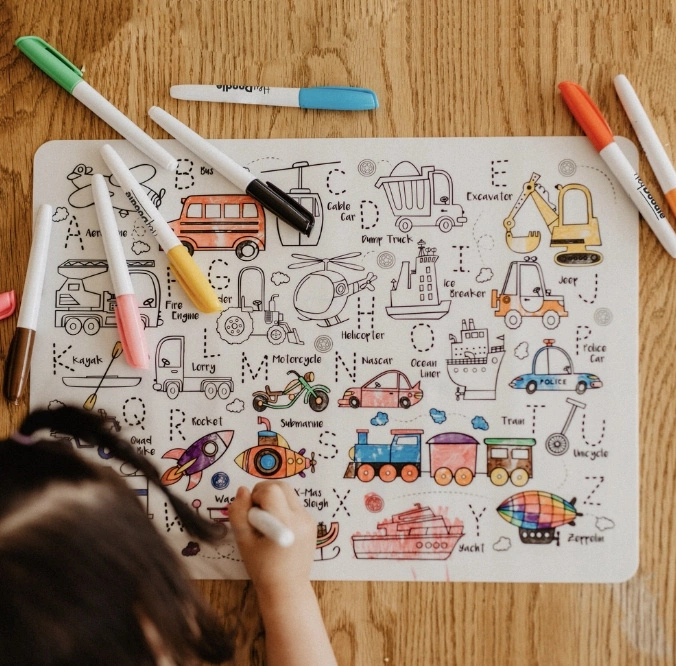 Mata silikonowa do kolorowania Pojazdy HeyDoodle to wspaniała zabawa edukacyjna dla dzieci, która rozwesela, uczy i inspiruje do tworzenia nowych rysunków i historyjek. Idealna dla małych artystów, którzy chcą eksplorować świat pojazdów i rozwijać swoją kreatywność!