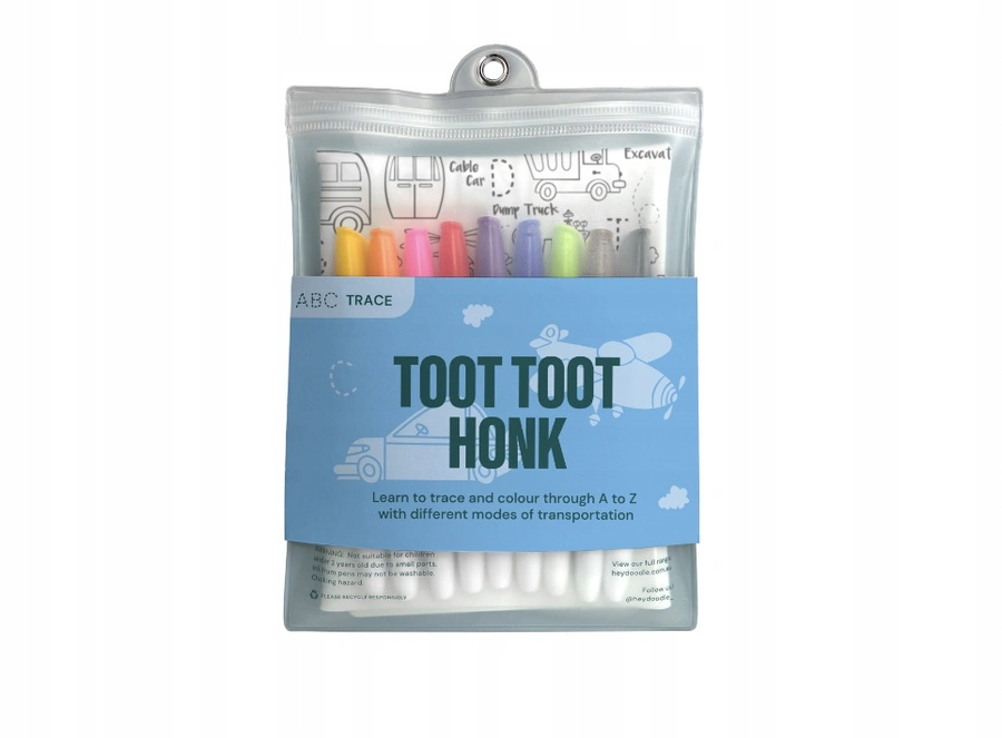- Bezpieczne flamastry: Zestaw zawiera dziewięć nietoksycznych, szybkoschnących flamastrów, zaprojektowanych specjalnie dla małych rączek. Flamastry są bezpieczne i zapobiegają rozmazywaniu się kolorów na macie.