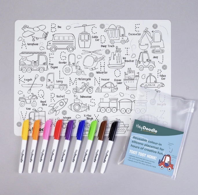 Mata silikonowa do kolorowania Pojazdy A3 – HeyDoodle