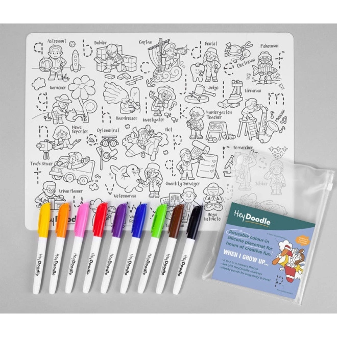 - Mata silikonowa A3: Pełna wesołych bazgrołków, które można kolorować wielokrotnie.