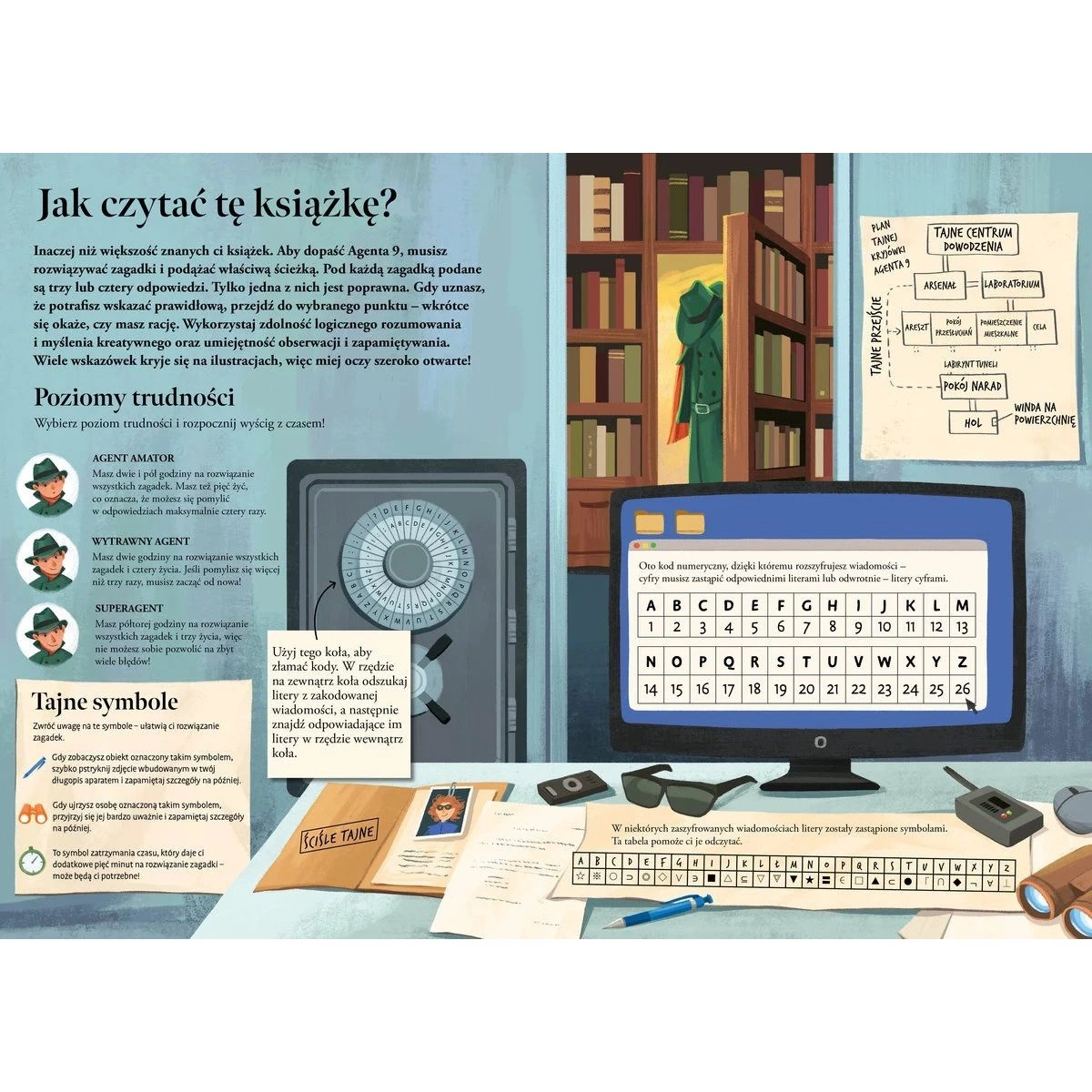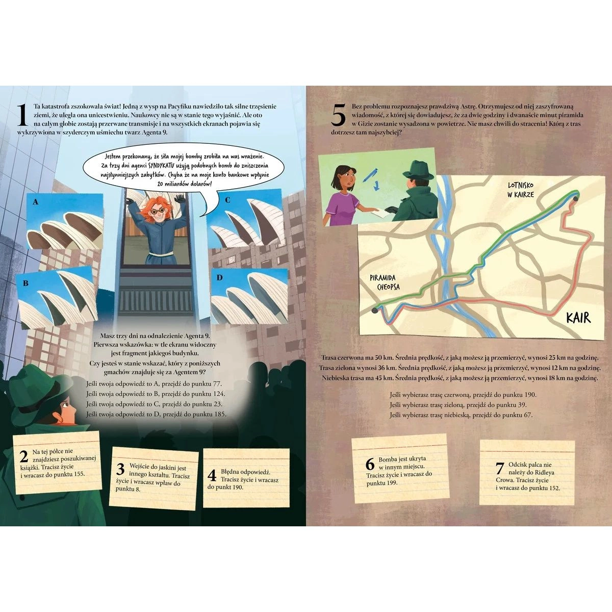 Ekscytująca interaktywna łamigłówka! Młody czytelnik wciela się w postać zwalczającego przestępczość superszpiega, Madisona Blaira, i rusza w arcyważną misję: ma powstrzymać niezwykle przebiegłego Agenta 9 przed zniszczeniem najsłynniejszych budowli świata. Aby tego dokonać, konieczne będzie rozwiązanie szeregu zagadek i poprawne wytypowanie odpowiedzi na różne pytania.
