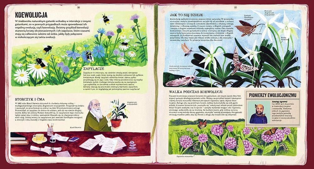 Odkryjcie tajemnice doboru naturalnego – teorii stworzonej przez prapradziadka Sary, Karola Darwina, i jego współpracownika, przyrodnika Alfreda Russela Wallace’a. Dowiecie się, jak życie na Ziemi ewoluowało od bakterii po pszczoły, storczyki, zięby, psy... i Was!