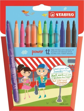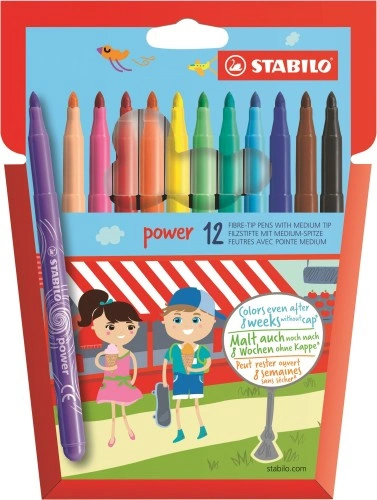 - Niezasychające flamastry STABILO Power nie zasychają przez 5 tygodni bez skuwki. Łatwo spieralny tusz i intensywne kolory w opakowaniu 12 sztuk. Idealne do twórczej zabawy!