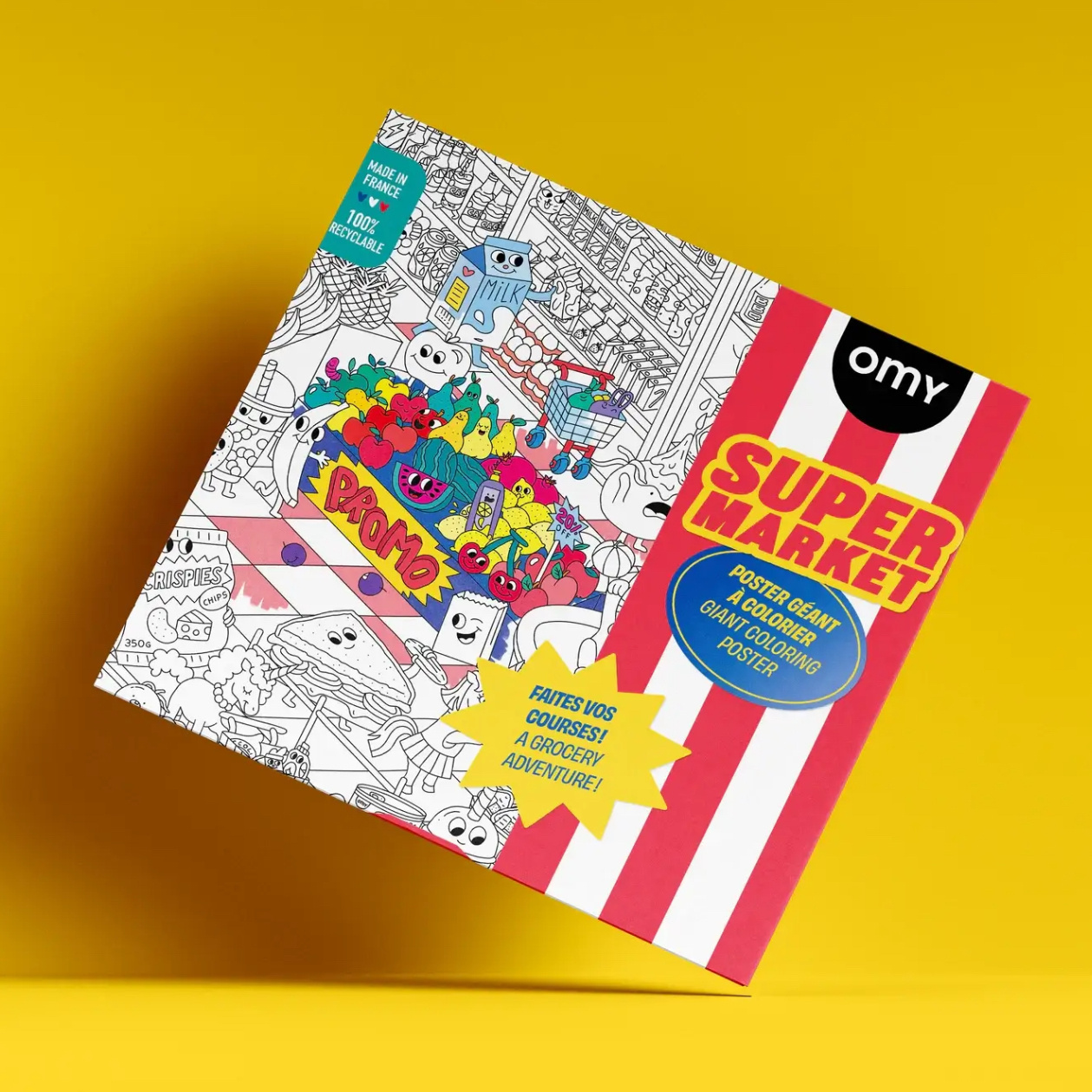 - Wejdź do pełnego humoru i energii świata OMY dzięki plakatowi „Super Market”! To ogromna, kolorowanka XXL o wymiarach 70 x 100 cm, która zabierze dzieci na niezapomnianą podróż po pełnym śmiechu i zabawy sklepie