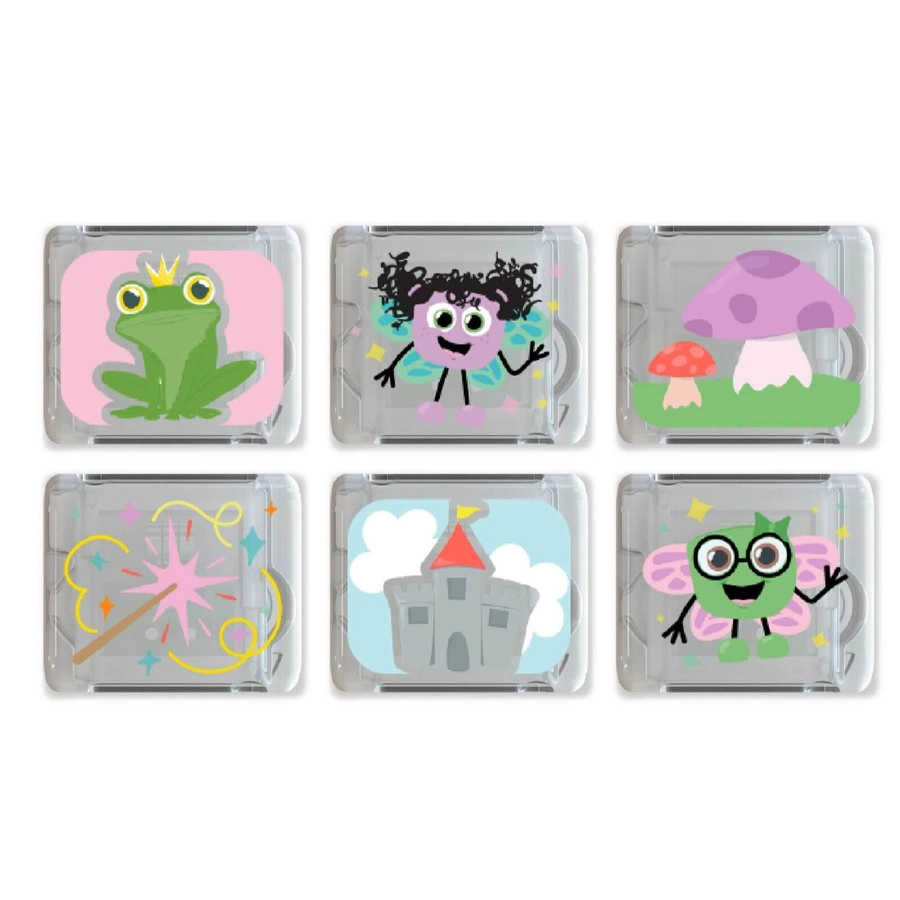 Wyrusz w magiczną podróż do świata rodem z baśni. Na każdej kostce pojawia się inny czarujący motyw – od uśmiechniętych wróżek, przez lśniący zamek unoszący się wśród chmur, aż po migoczącą różdżkę, która potrafi odmienić każdą chwilę zabawy w niezwykłą przygodę. To idealny zestaw dla dzieci kochających bajkowy klimat, świat fantazji i kreatywną zabawę.