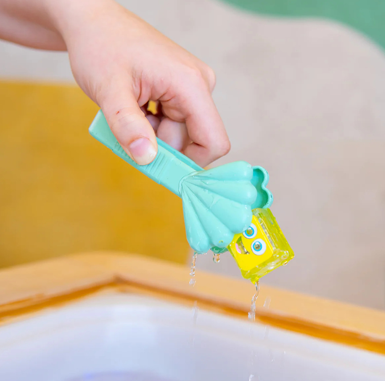 Szczypce w kształcie muszli – świetne do chwytania, przenoszenia i ćwiczenia precyzji.