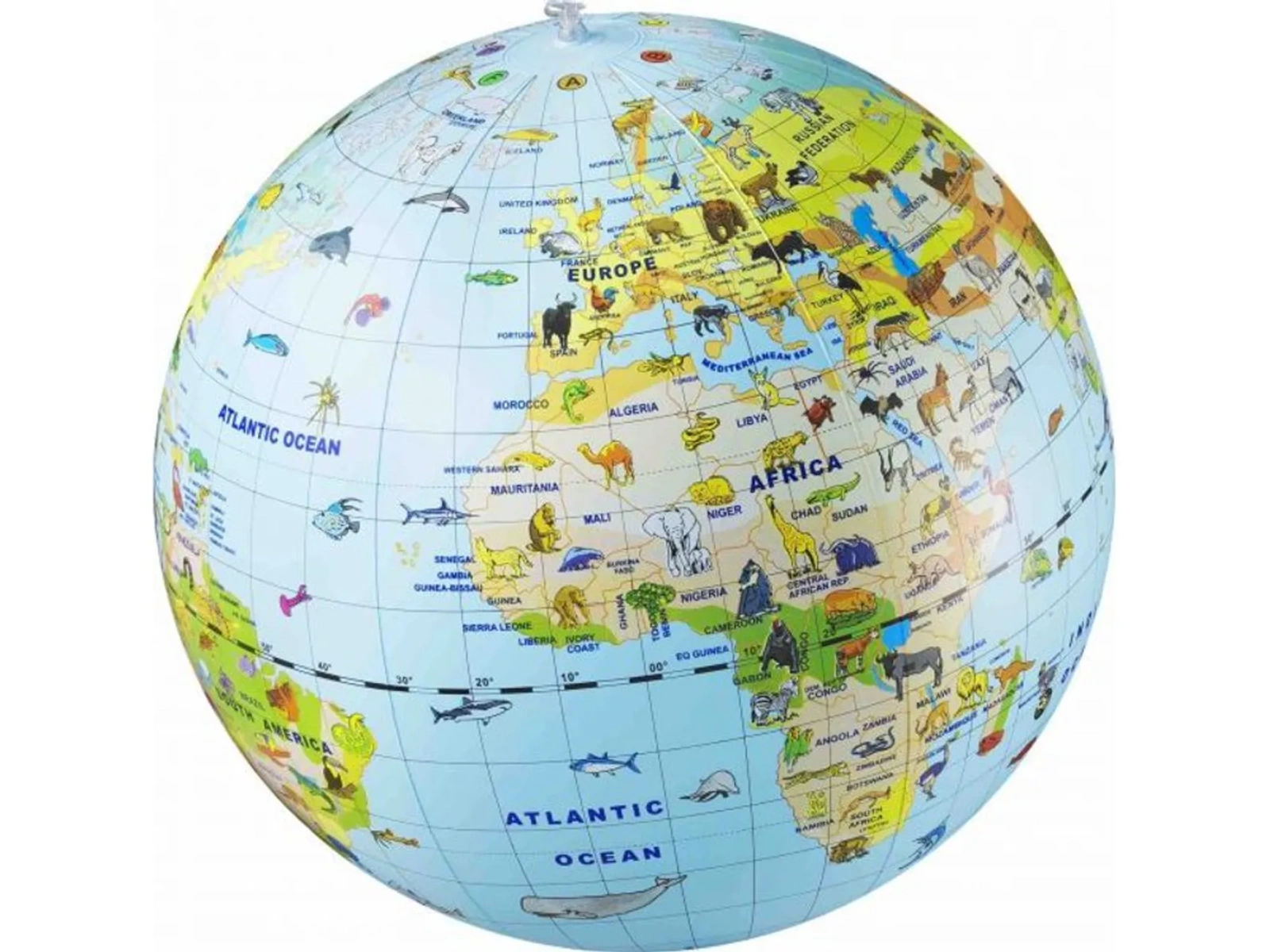 - Dzieci będą lokalizować kontynenty i kojarzyć je ze zwierzętami w ich środowisku. Piłka globus do nadmuchania (pompka nie jest dołączona) umożliwia edukacyjną zabawę w odkrywanie świata.