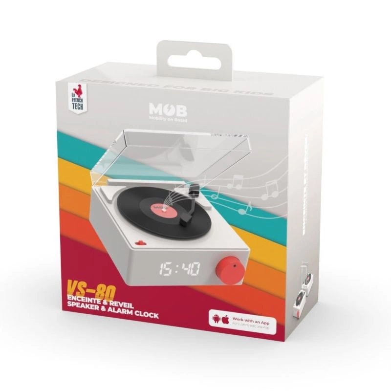 - Funkcjonalny retro głośnik inspirowany latami 80-tymi z wbudowanym budzikiem. Dzięki funkcji Bluetooth pozwala na bezprzewodowe przesyłanie utworów. Obracająca się płyta gramofonu przenosi w świat