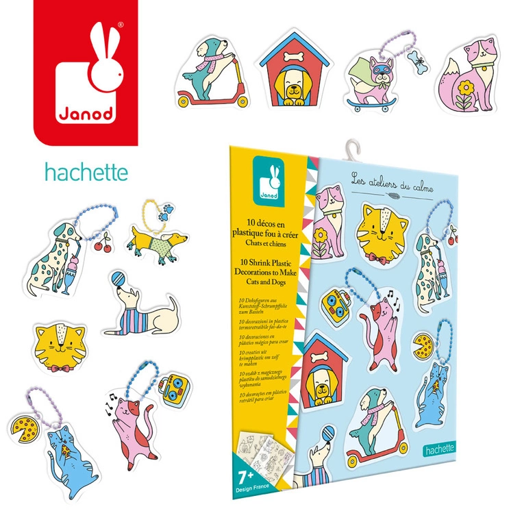- Zestaw kreatywny do tworzenia ozdób z termokurczliwego plastiku Koty i Psy - Janod Zestaw Koty i Psy od francuskiej marki Janod to świetna propozycja dla dzieci, które uwielbiają kreatywną zabawę i pragną stworzyć unikalne ozdoby.