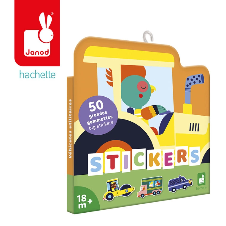 Janod Duże naklejki wielorazowe 50 szt. Pojazdy 18m+
