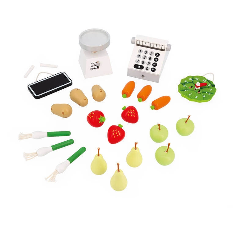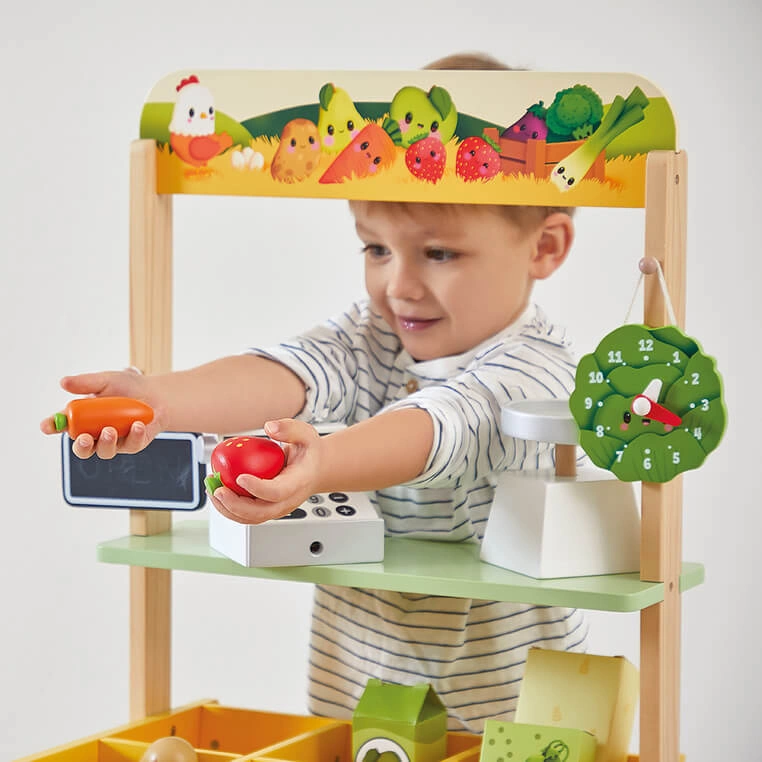 - Zestaw sklep-warzywniak z kolekcji Farma to wspaniała zabawka, która pozwala dziecku na zabawę w sklep i naśladowanie codziennych czynności dorosłych.
