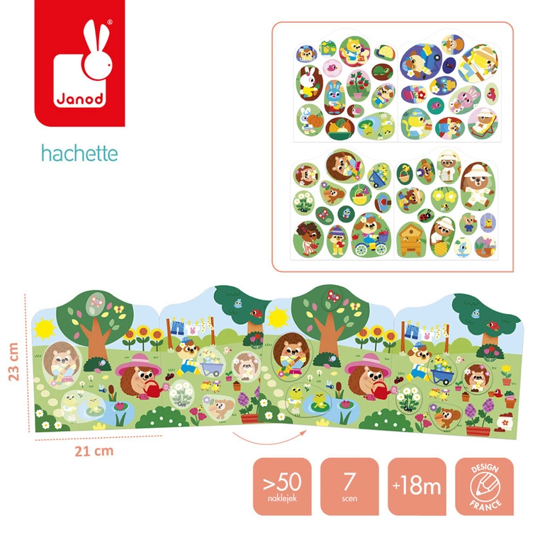 Janod Książeczka do wyklejania z naklejkami Ogród 18m
