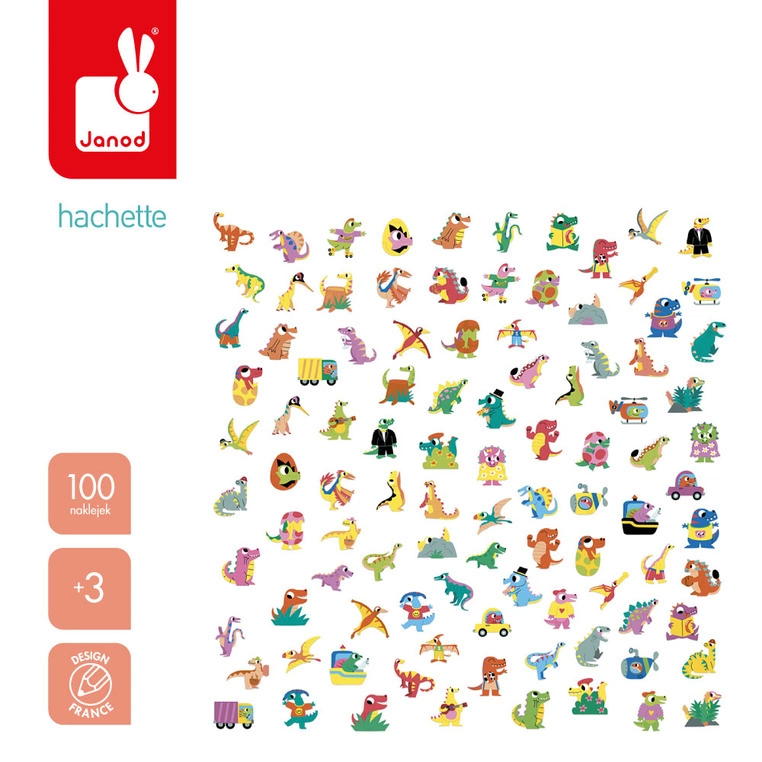 Janod Naklejki wielorazowe 100 szt. Dinozaury 3+