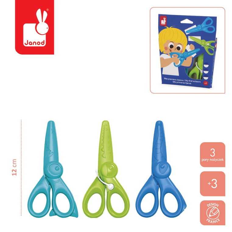 - Pierwsze kroki w świecie wycinania Zestaw trzech bezpiecznych nożyczek do wycinania wzorów z kolekcji COLO od francuskiej marki Janod to idealne narzędzie dla najmłodszych twórców.