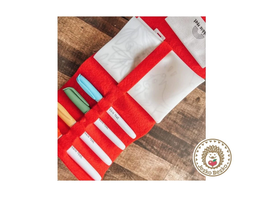 Porządek i wygoda – dzięki filcowemu etui wszystko ma swoje miejsce, a dziecko może samo spakować zestaw.