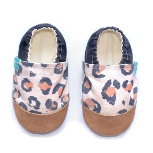 Oddychające i antypoślizgowe – Bawełniana tkanina zewnętrzna oraz bambusowa wyściółka zapobiegają poceniu się stóp, skórzana podeszwa działa antypoślizgowo.