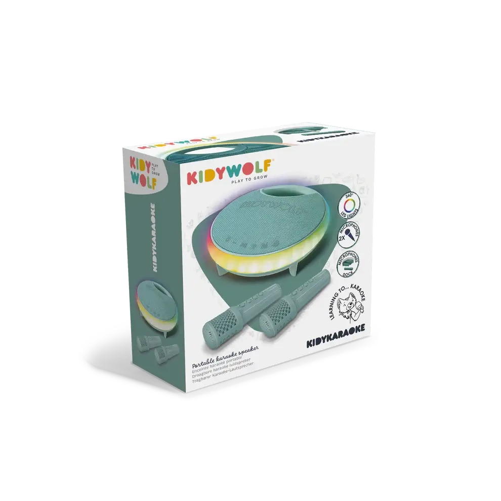 - KIDYKARAOKE to kompaktowy, bezprzewodowy głośnik karaoke o mocy 40W, który zamienia każdą przestrzeń w scenę koncertową. Wyposażony w dwa mikrofony bezprzewodowe, efekty dźwiękowe i świetlne, jest idealnym towarzyszem imprez w domu i w podróży.