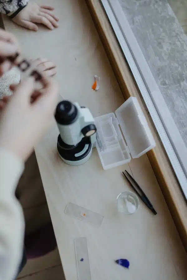 KIDYMICROSCOPE oferuje trzy poziomy powiększenia: 50x, 150x i 300x. Pozwala to obserwować niezwykłe struktury, od liści roślin po włosy zwierząt, otwierając przed dziećmi zupełnie nowe perspektywy.