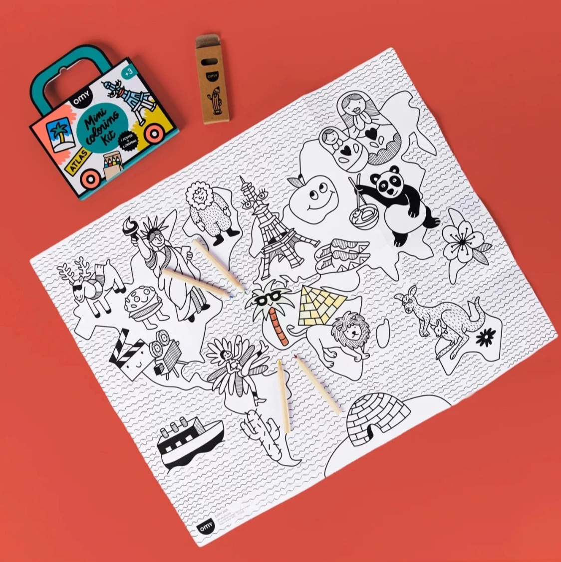 Kieszonkowa kolorowanka z kredkami – Atlas