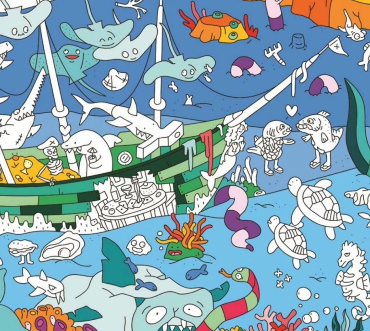 - Obrazek w kolorowance stymuluje rozwój manualny i wyobraźnię. Po zabawie plakat można używać jako dekorację, podkładkę lub tapetę. Wykonany z recyklingowego papieru.