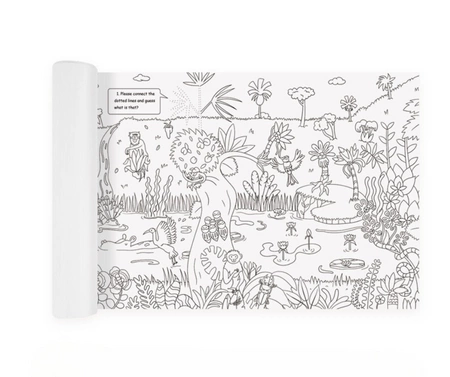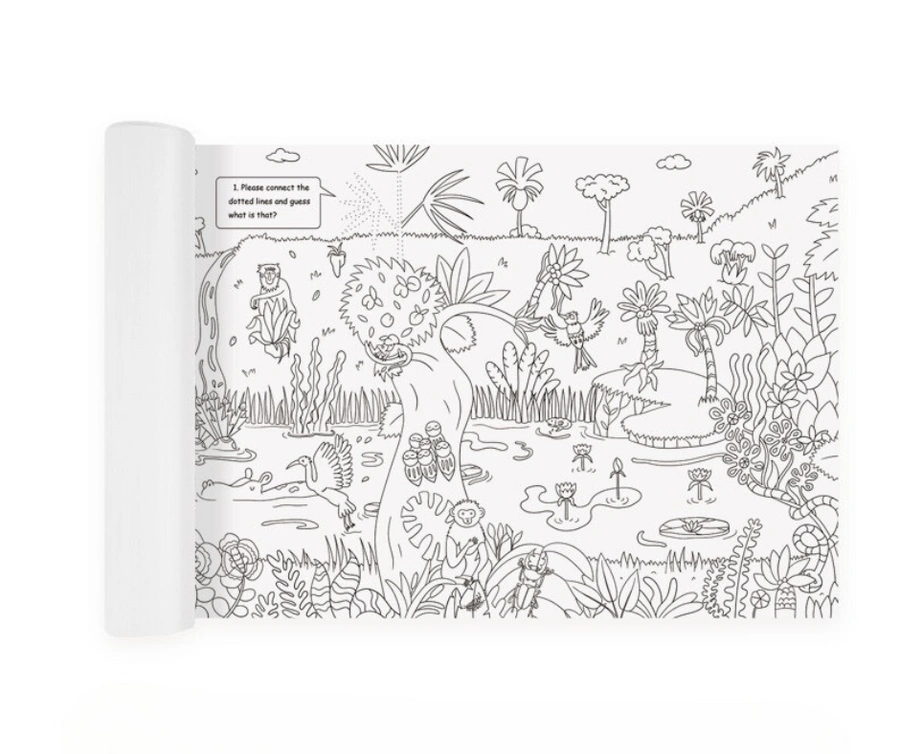 - Kolorowanka w rolce z dżunglą (10 m) to zabawa z malowaniem, wycinaniem i mini grami. Idealna dla dzieci od 3. roku życia, rozwija wyobraźnię i kreatywność.
