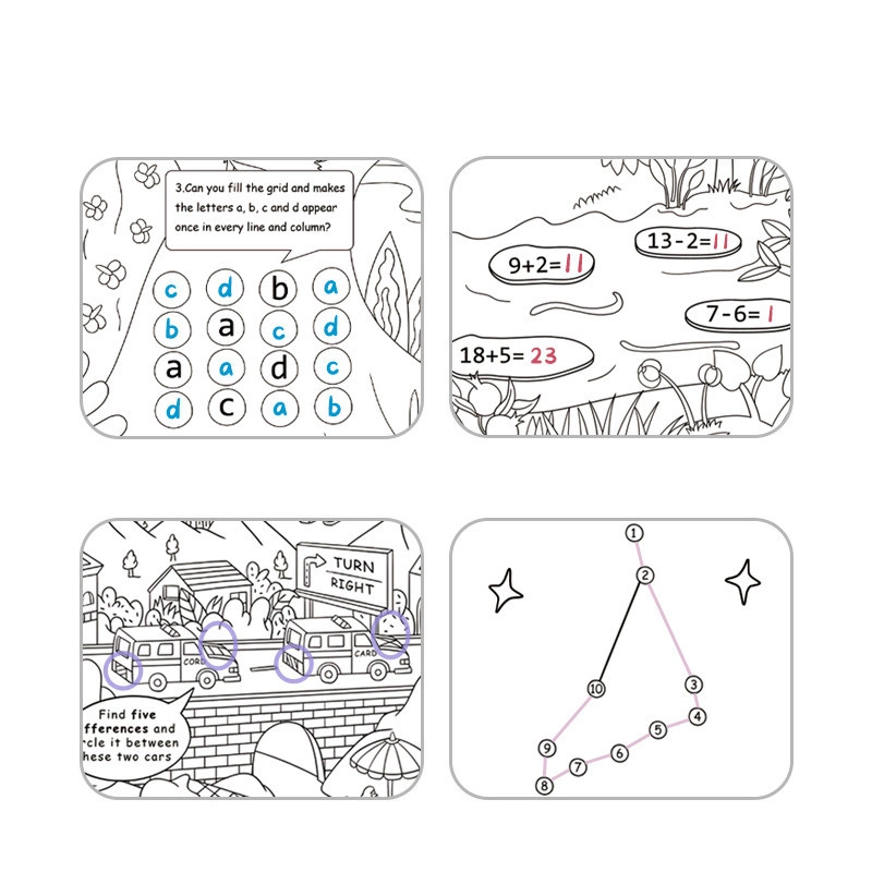 Dodatkowo, w zestawie znajdują się mini gry, takie jak labirynt, sudoku, gra liczbowa, znajdź różnicę i narysuj linię, które zapewniają dzieciom jeszcze więcej radości i wyzwań. Kolorowanka jest odpowiednia dla dzieci od 3. roku życia i jest wykonana z papieru, co gwarantuje bezpieczeństwo i łatwość użytkowania.