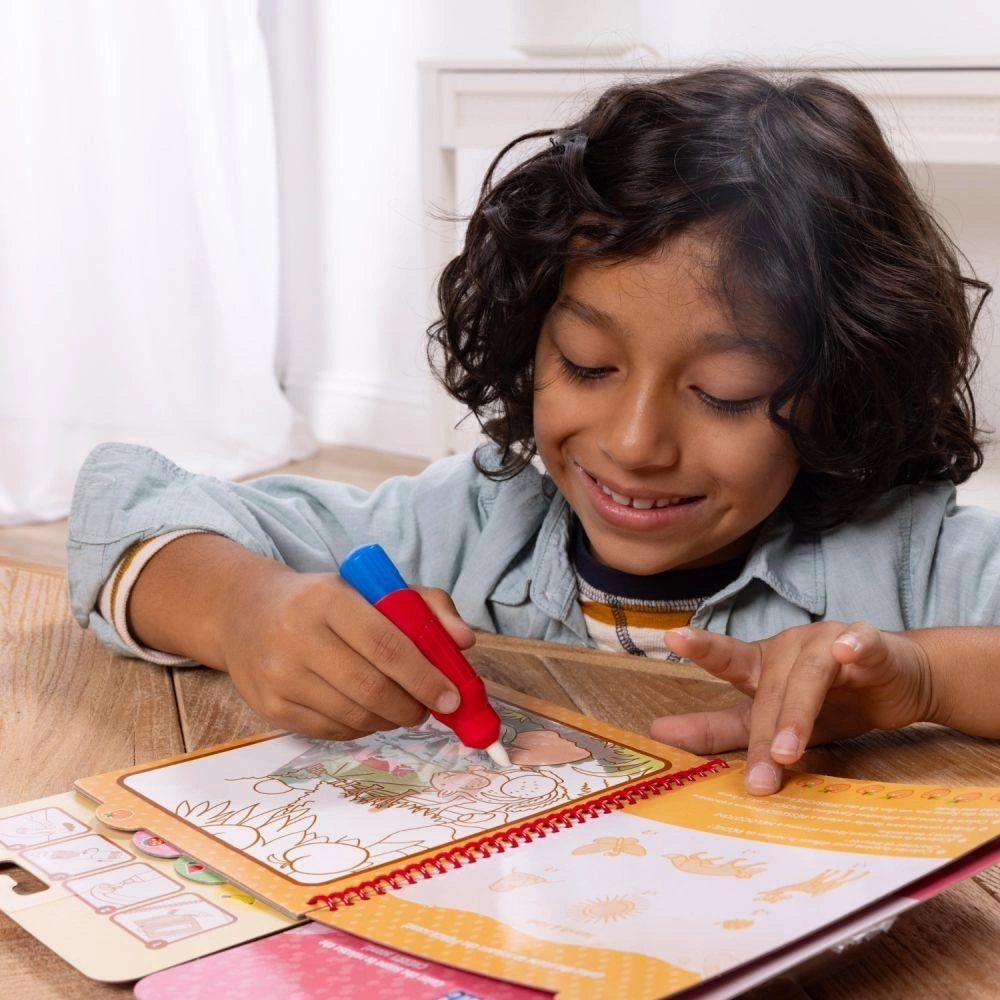 Ten zestaw o tematyce owoców zawiera strony wielokrotnego użytku oraz wielorazowy pisak wodny. Wystarczy napełnić pisak wodą i przesuwać nim po stronach książeczki – kolorowe ilustracje, detale oraz zapachy owoców ujawniają się natychmiast. Po wyschnięciu strony wracają do swojego pierwotnego wyglądu, co pozwala na zabawę od nowa.