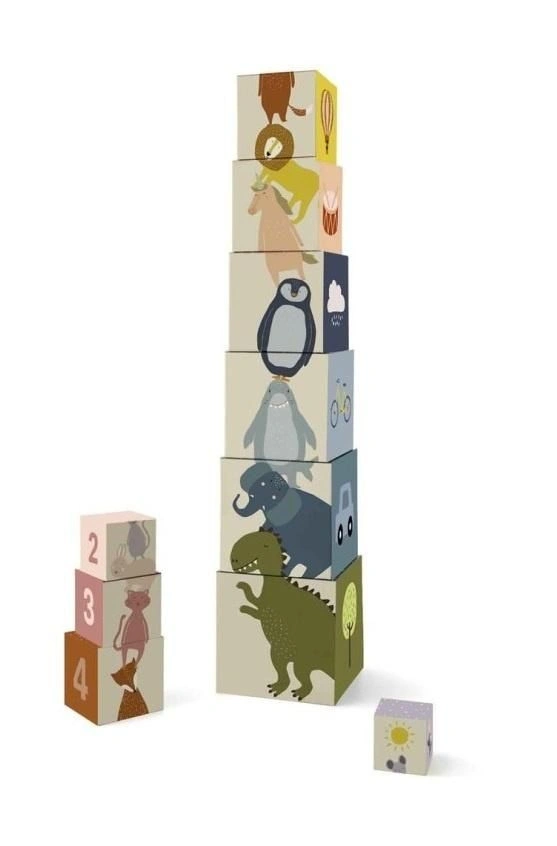 Podaruj maluchowi zestaw, który łączy rozwój, naukę i świetną zabawę. Dziesięć lekkich, kartonowych klocków tworzy setki możliwości: od budowania pierwszych wież, przez dopasowywanie rozmiarów, aż po poznawanie kolorów, liczb i zwierzątek. Każda ścianka odsłania inną atrakcję – obrazki do układania, proste puzzle, ilustracje przedmiotów i zwierząt, a także grafiki edukacyjne.