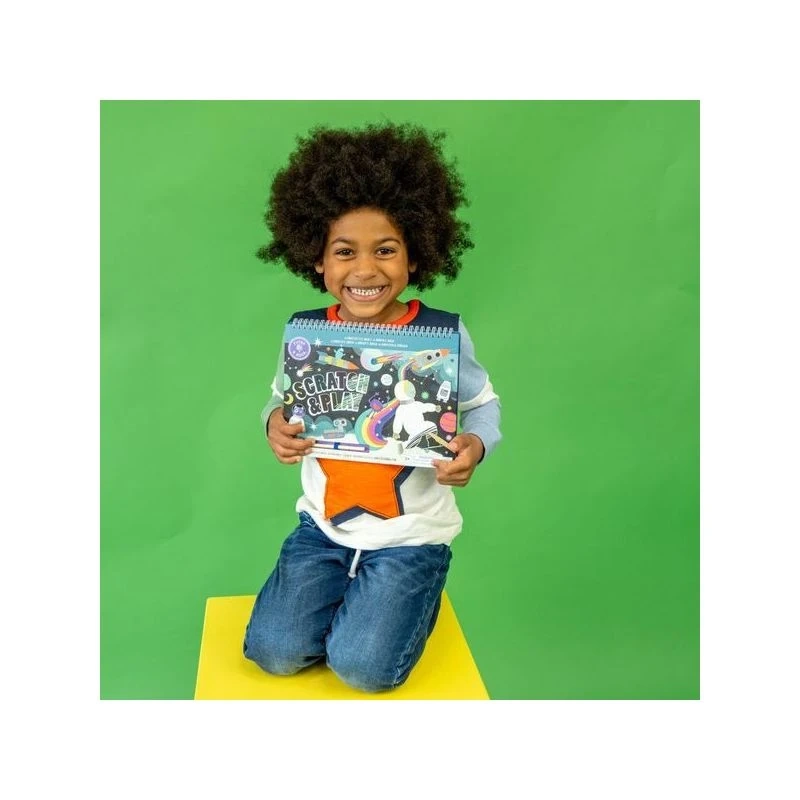 Za pomocą dołączonego drewnianego rysika maluchy mogą zdzierać czarną warstwę z kart, tworząc własne rysunki lub korzystać z dołączonego arkusza z szablonami, aby uzyskać jeszcze więcej niesamowitych kształtów.