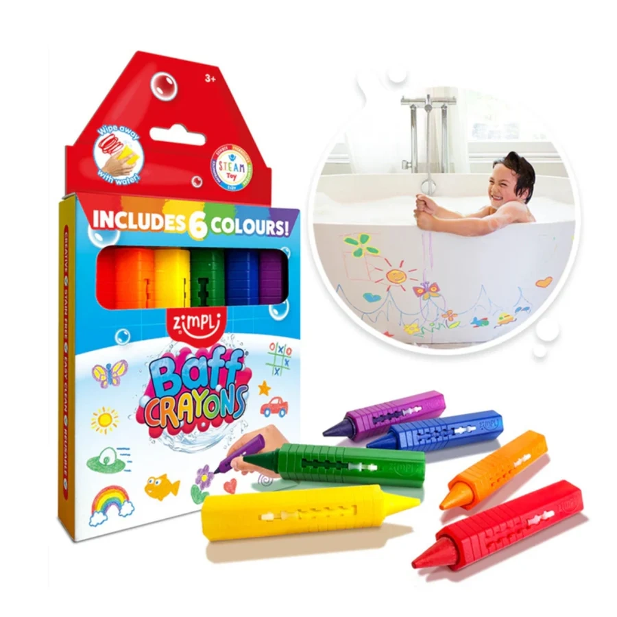 - Kredki do kąpieli Baff Crayons Zimpli Kids to kreatywna zabawa podczas kąpieli. W pełni bezpieczne, dermatologicznie przetestowane, wspierają rozwój sensoryczny i twórcze wyrażanie siebie malucha.