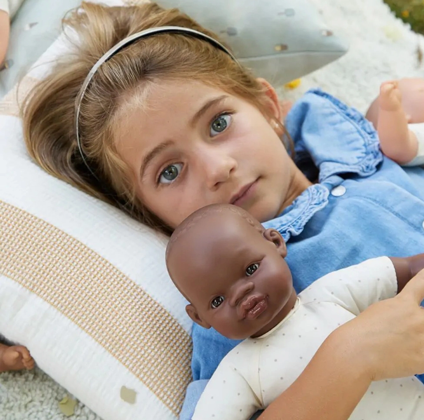 - Urocza lalka hiszpańskiej marki Miniland o wysokości 32 cm to wyjątkowa zabawka, która wspiera rozwój emocjonalny dziecka oraz promuje wartości takie jak empatia, opiekuńczość i szacunek dla różnorodności.