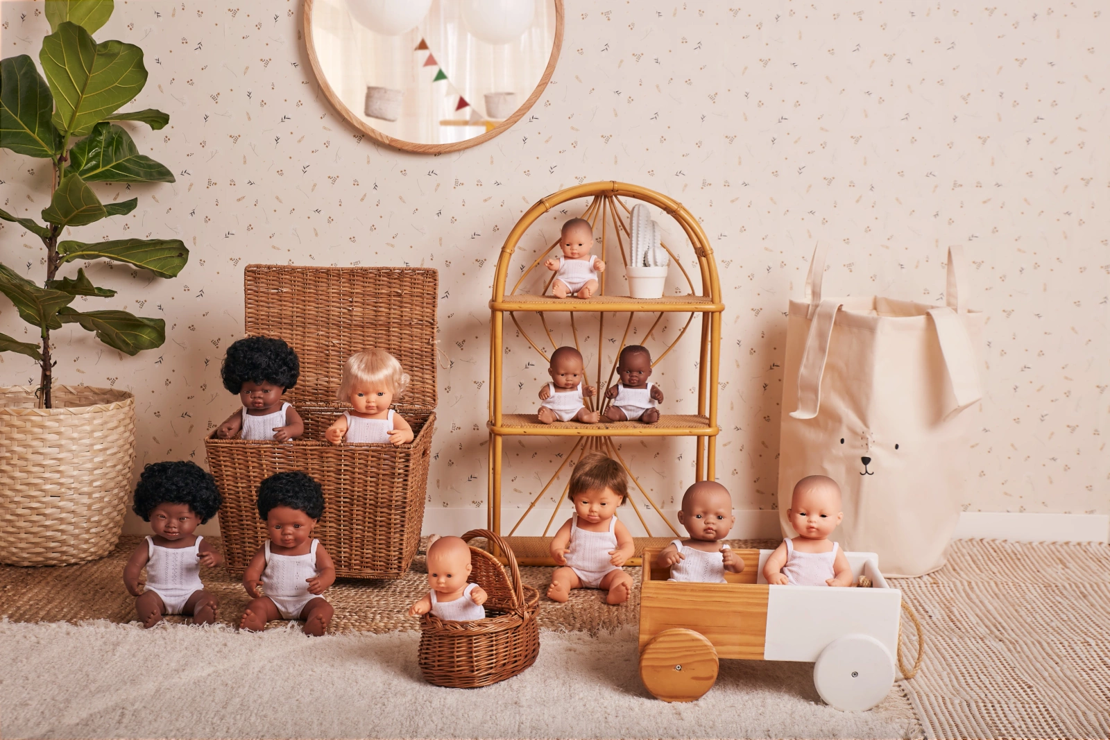 - Lalki bobasy marki Miniland to wyjątkowe zabawki edukacyjne, które łączą realizm wykonania z wartościami wychowawczymi. Każda lalka została zaprojektowana tak, by odzwierciedlać różnorodność dzieci na świecie, wspierając naukę empatii, tolerancji.