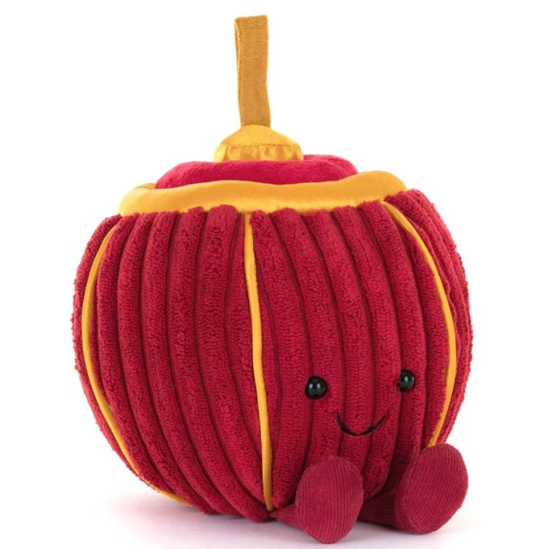 Pluszowy Lampion Rayray Jellycat to urocza i pełna energii maskotka, która wprowadza radość i ciepło przy każdej okazji. Wykonany z intensywnie czerwonego, miękkiego sztruksu, ozdobiony złotymi satynowymi detalami oraz uroczym, wyszywanym uśmiechem, zachwyca zarówno dzieci, jak i dorosłych. Dzięki złotej pętelce może pełnić także funkcję dekoracji.