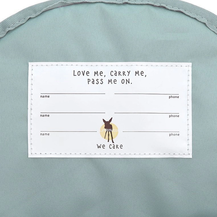 Etykieta z wizytówką na imię dziecka i numer kontaktowy rodzica,